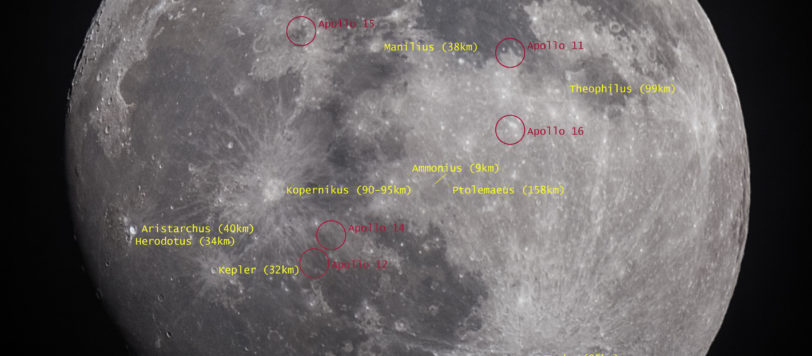 Because of the barlow 2x lense the moon is too big for one single image. Therefore I combined 2 single images, one with the left and one with the right half of the moon. The result looks fantastic for me 😀 Map of the moon with Apollo landing sites: